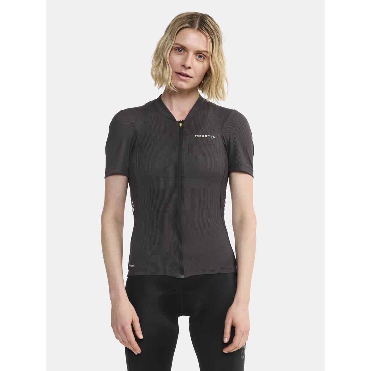 Dámský, technicky pečlivě propracovaný cyklistický dres CRAFT ADV Endur s rib strukturou. Materiál: 100% recyklovaný polyester; boky: 87% recyklovaný polyester, 13% elastan - výborný odvod potu, rychleschnoucí, chladivý efekt - ergonomický střih - meshové panely na bocích, z vnitřní strany rukávů a v zadní části dresu - zip podložený légou - speciální tvarování límce v oblasti zátylku pro vyšší komfort při jízdě - ve spodní části vzadu stažení do gumy se silikonovým potiskem z vnitřní strany - v zadní části trojdílná kapsa se skrytou kapsičkou na zip